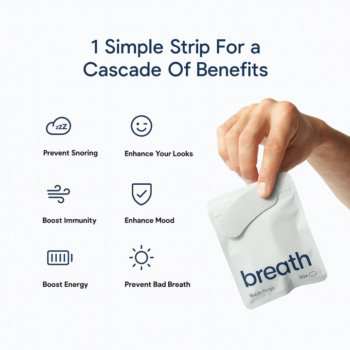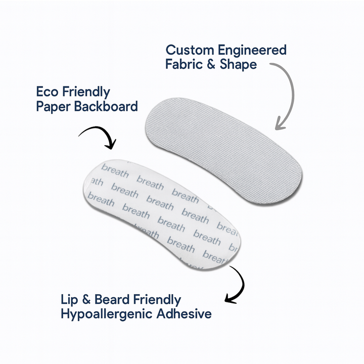 Breath promotes nose breathing, which can boost your oxygen intake by 20%, put an end to snoring, and help you drift off quicker and sleep better.